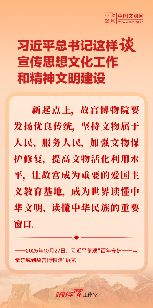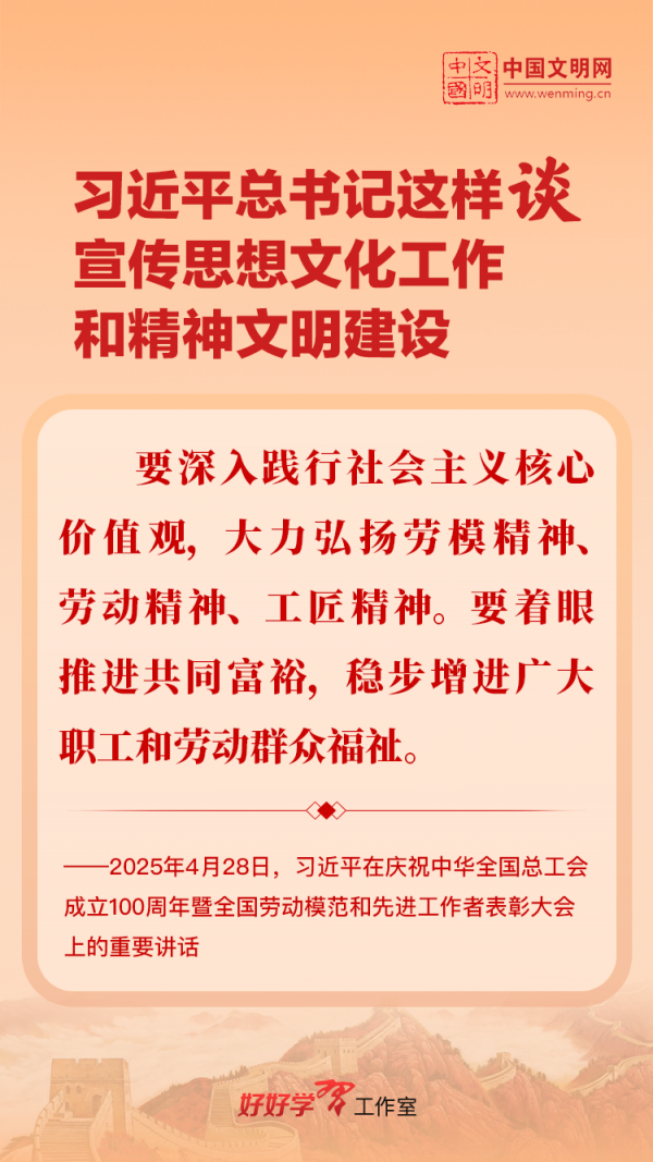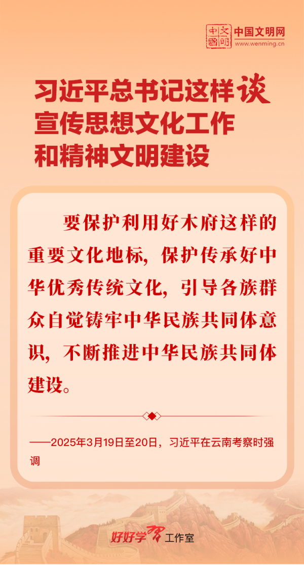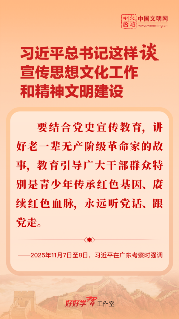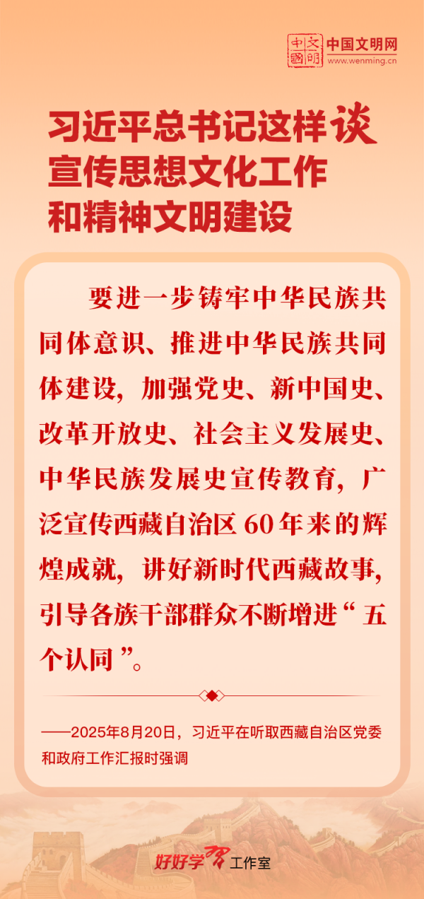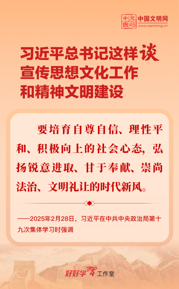 習(xí)近平總書記高度重視宣傳思想文化工作和精神文明建設(shè),念茲在茲、飽含期許。2025年,習(xí)近平總書記對(duì)宣傳思想文化工作和精神文明建設(shè)作出一系列新的重要指示,發(fā)表一系列重要論述。本網(wǎng)從這一年的頭條報(bào)道中輯錄部分內(nèi)容,讓我們一起深入學(xué)習(xí)領(lǐng)會(huì),更加自覺學(xué)習(xí)貫徹習(xí)近平文化思想,更好擔(dān)負(fù)起新時(shí)代的文化使命。