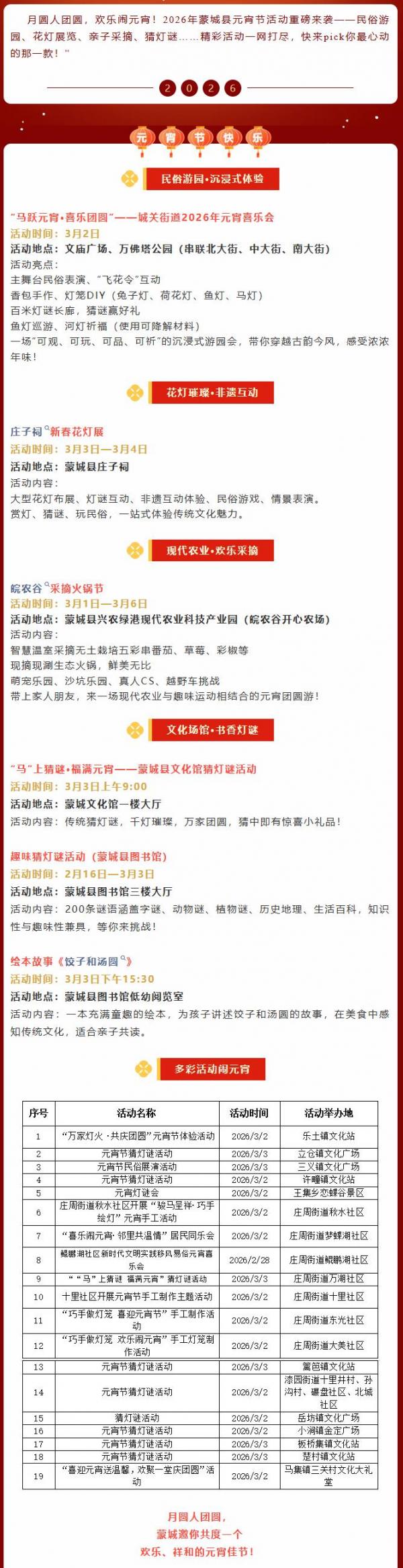 精彩不容錯(cuò)過!蒙城2026年元宵節(jié)活動(dòng)預(yù)告來啦!